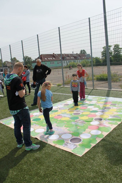 Zgromadzeni uczestnicy Festynu mogli wziąć udział w różnorodnych grach i zabawach przygotowanych przez 25 beneficjentów projektu. Na terenie mobilnego miasteczka ruchu drogowego, rodzinnie i indywidualnie można było sprawdzić swoje umiejętności poruszania się rowerem na drodze. Najmłodsi , zachęcani przez p. Bogumiłę Celer namalowali wielki pejzaż „Łąka Marzeń”.