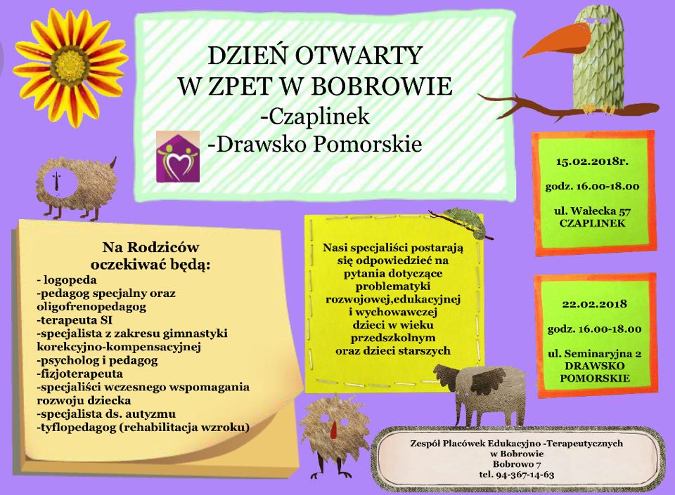 Serdecznie zapraszamy wszystkich zainteresowanych na Dzień Otwarty w Zespole Placówek Edukacyjno-Terapeutycznych w Bobrowie.