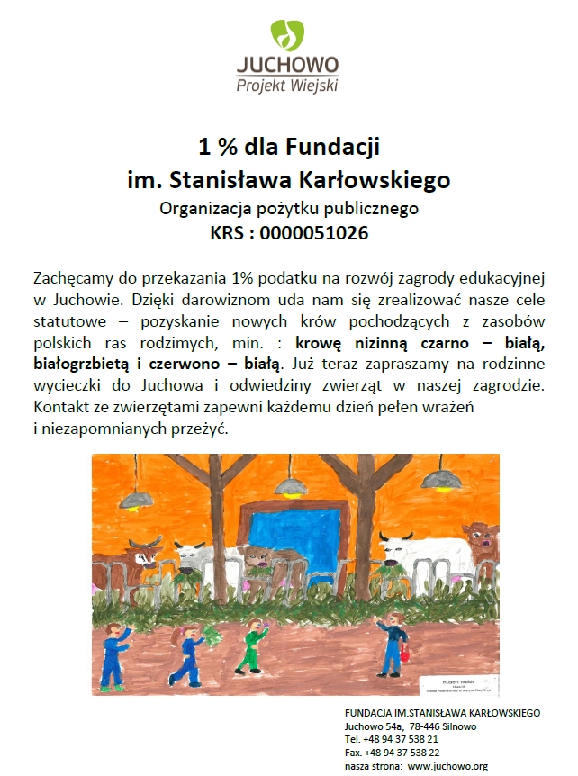 Fundacja im. Stanisława Karłowskiego w Juchowie zachęca do przekazania 1% podatku na rozwój zagrody edukacyjnej w Juchowie.