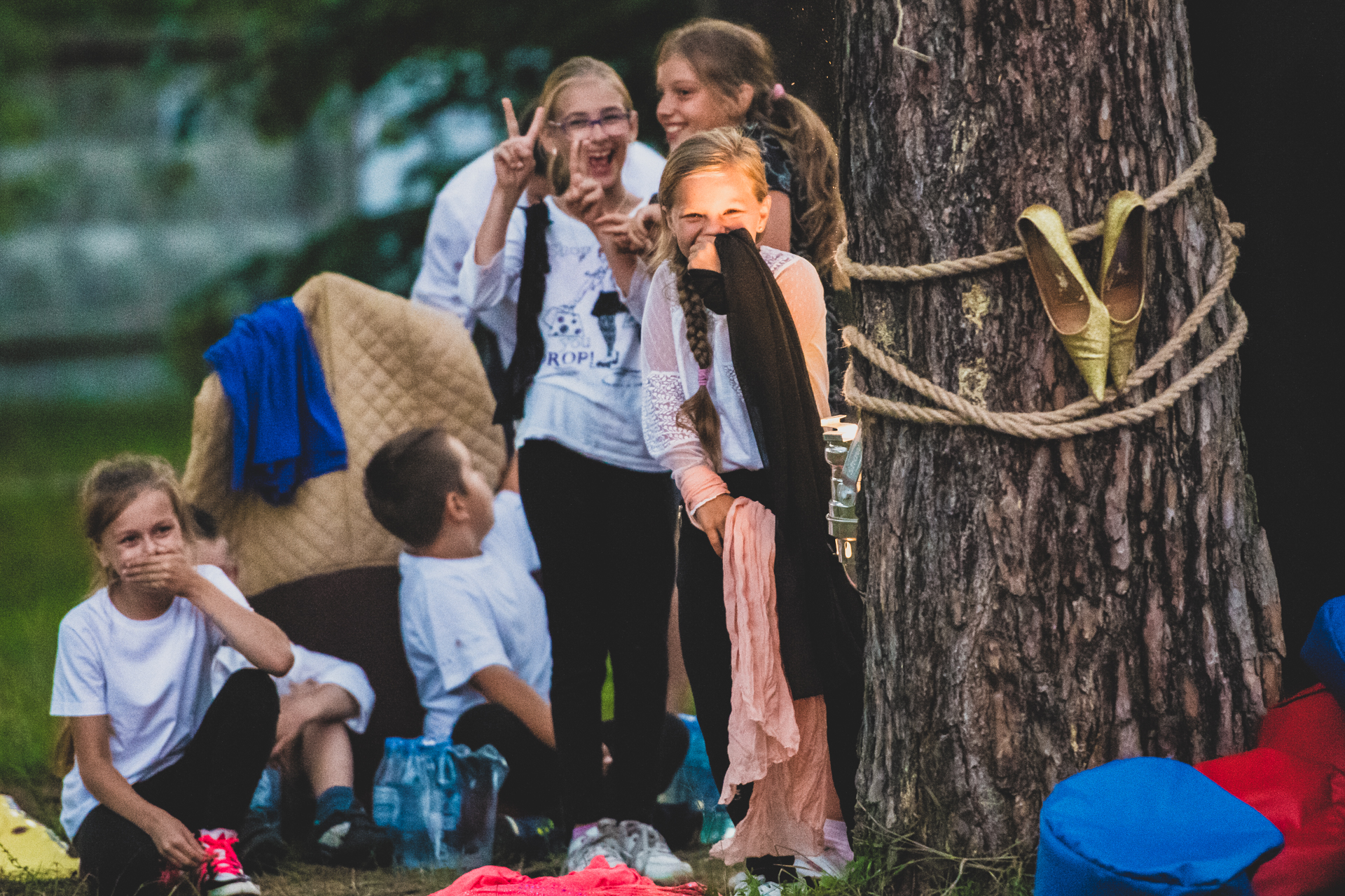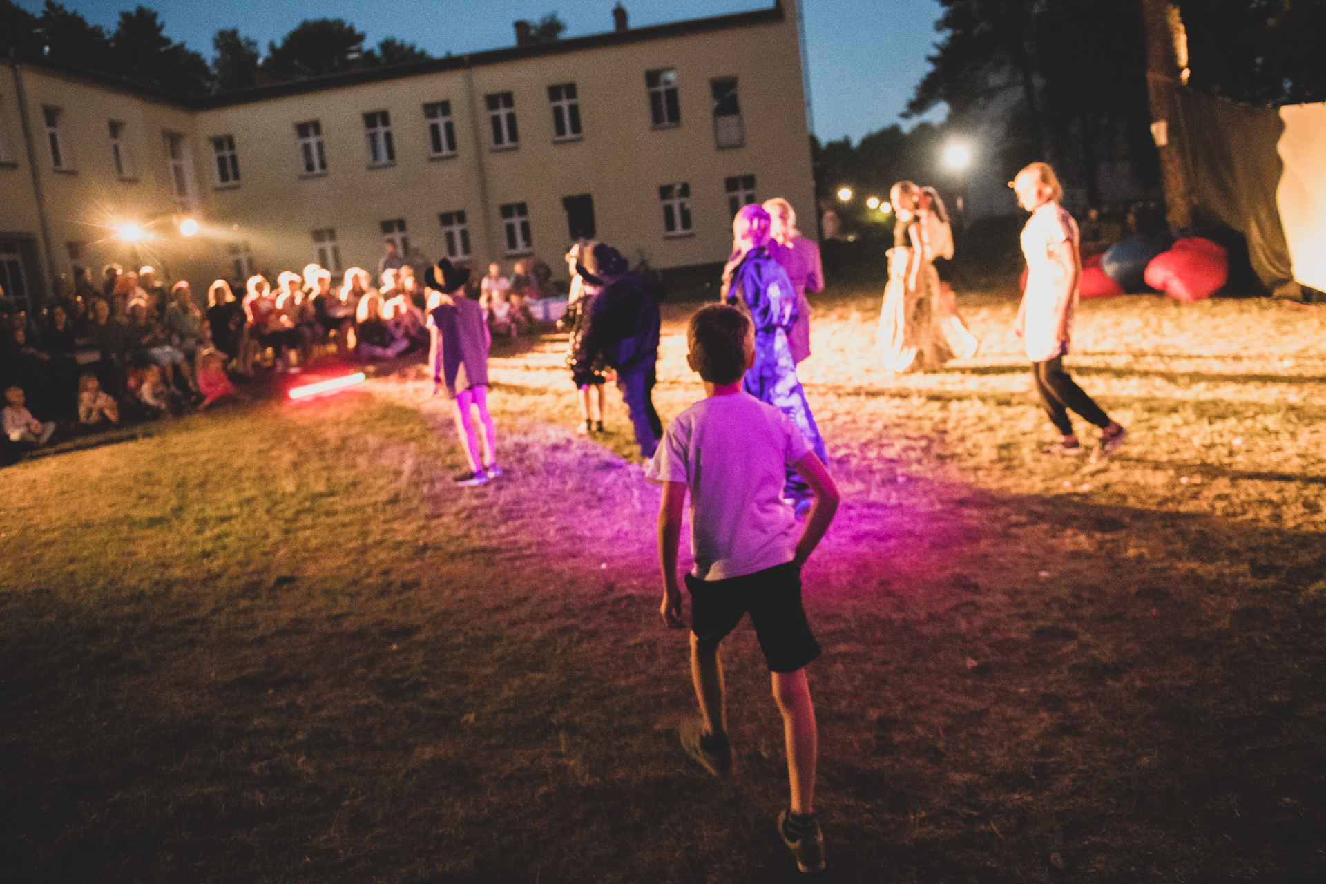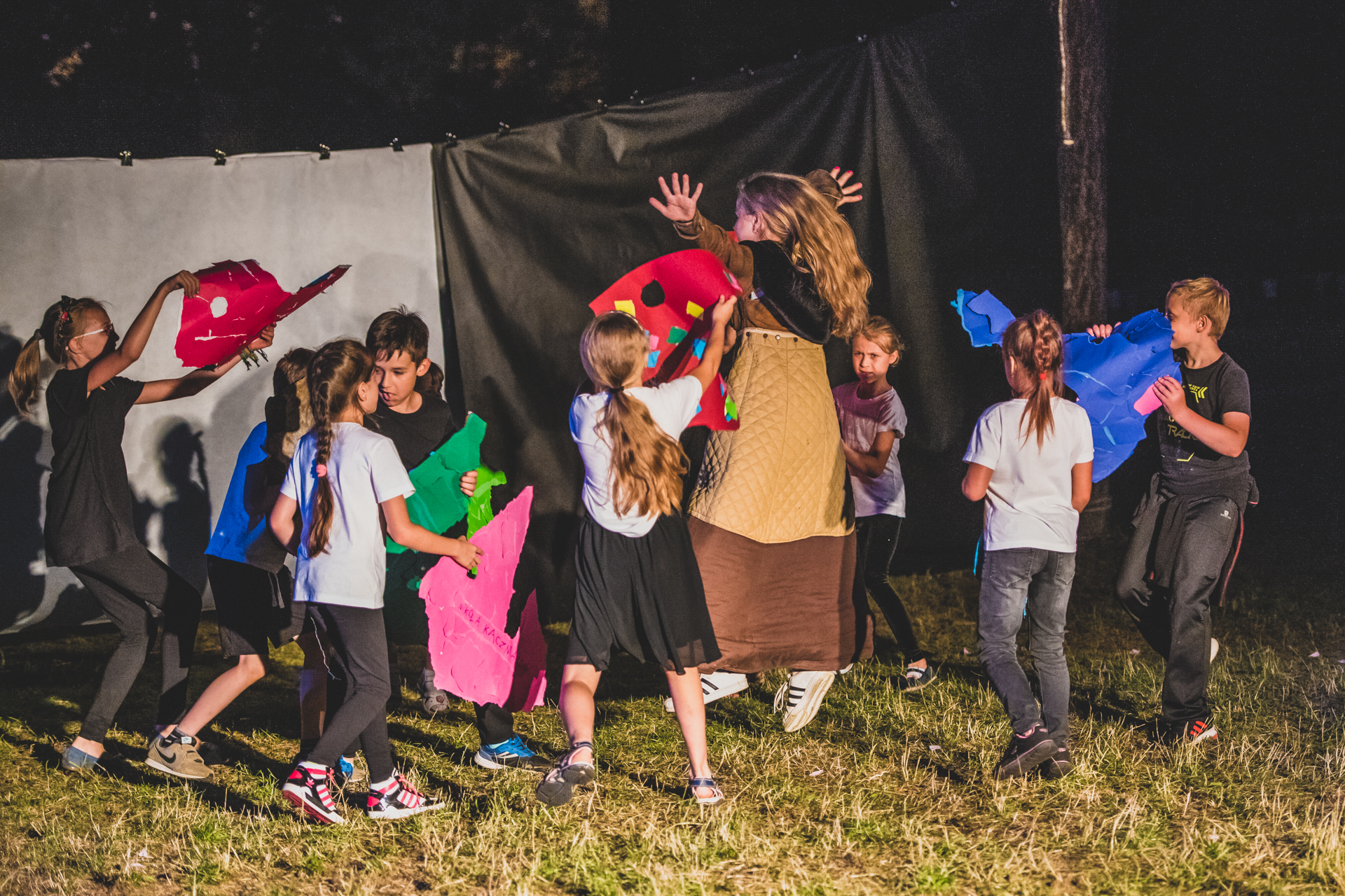 I znowu dwa tygodnie przeminęły z prędkością światła. Projekt Instytutu Teatralnego pozwolił 45 uczestnikom w wieku 7-14 lat na 13 dni przenieść się w świat animacji poklatkowej, słuchowiska, tańca i fotografii. Rotacyjny charakter pracy dał możliwość spróbować swoich sił w każdej z dziedzin tegorocznej edycji. Efekt dwutygodniowych prac z instruktorami mogliśmy oglądać podczas dwóch pokazów finałowych – 20 i 21 lipca o godz. 21.21. Godzina nieprzypadkowa, bo tuż po zachodzie słońca. Frekwencja na widowni przerosła nasze najśmielsze oczekiwania. I mimo początkowych problemów technicznych, zabawa była przednia!