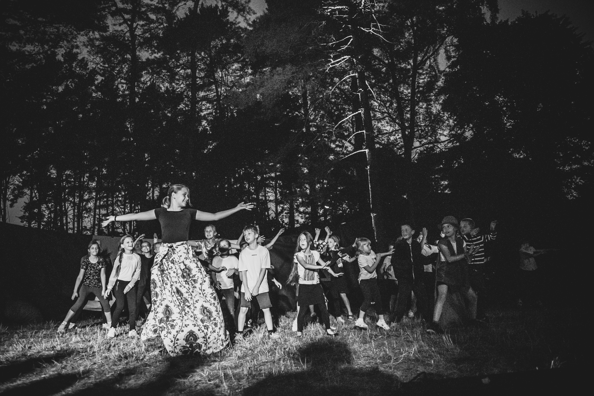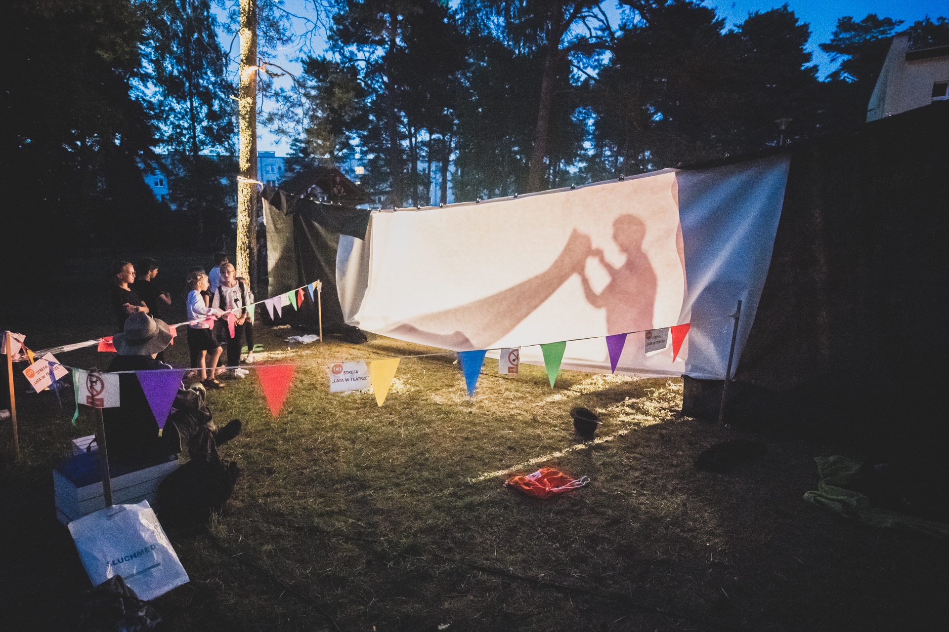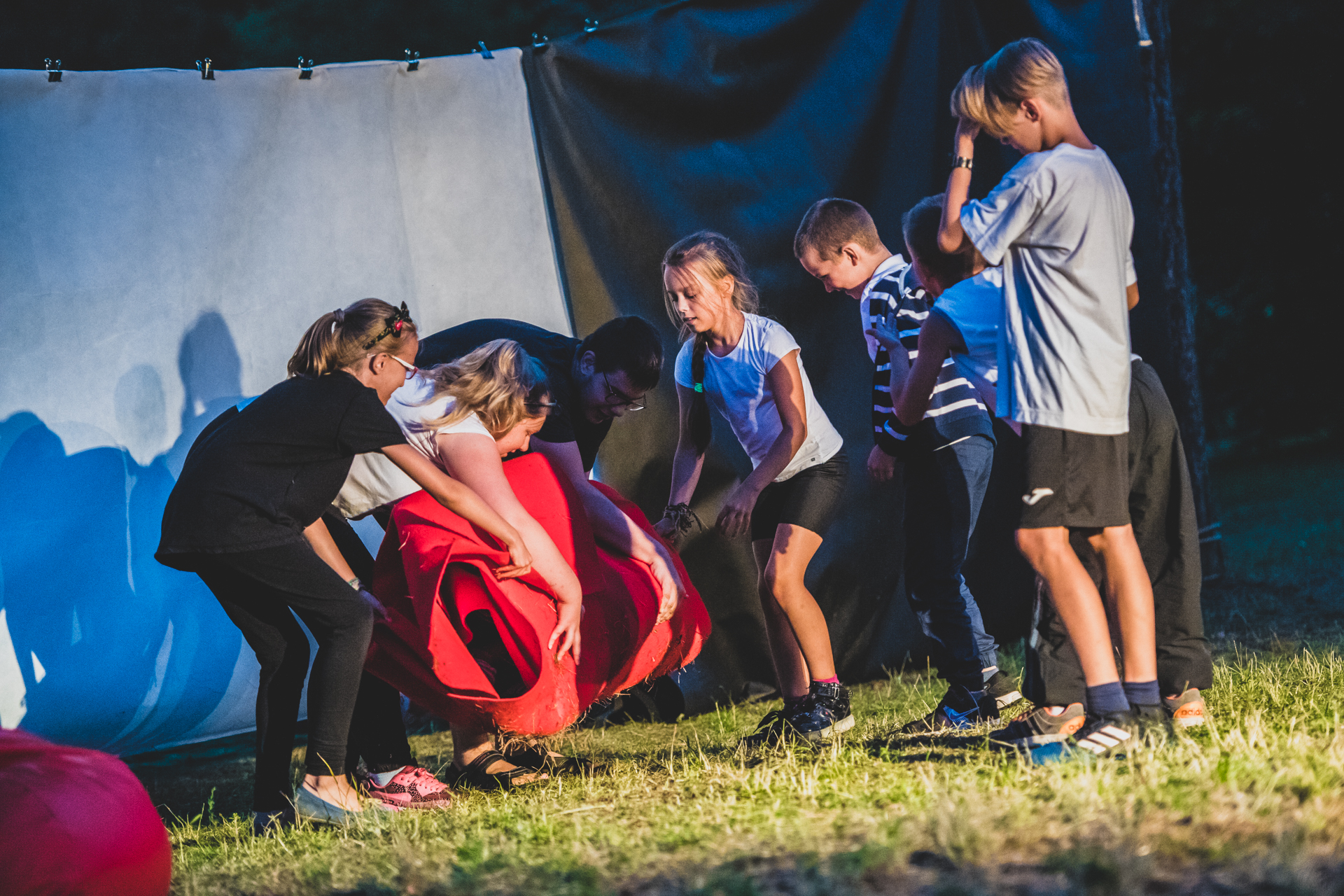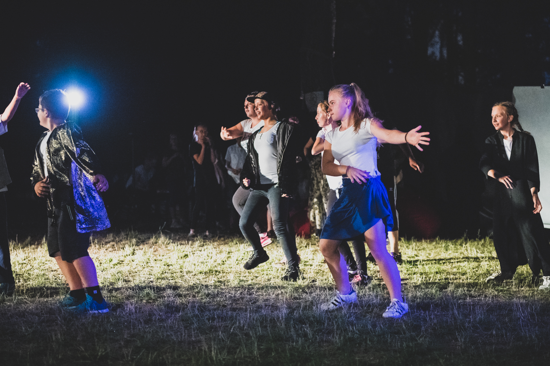 I znowu dwa tygodnie przeminęły z prędkością światła. Projekt Instytutu Teatralnego pozwolił 45 uczestnikom w wieku 7-14 lat na 13 dni przenieść się w świat animacji poklatkowej, słuchowiska, tańca i fotografii. Rotacyjny charakter pracy dał możliwość spróbować swoich sił w każdej z dziedzin tegorocznej edycji. Efekt dwutygodniowych prac z instruktorami mogliśmy oglądać podczas dwóch pokazów finałowych – 20 i 21 lipca o godz. 21.21. Godzina nieprzypadkowa, bo tuż po zachodzie słońca. Frekwencja na widowni przerosła nasze najśmielsze oczekiwania. I mimo początkowych problemów technicznych, zabawa była przednia!