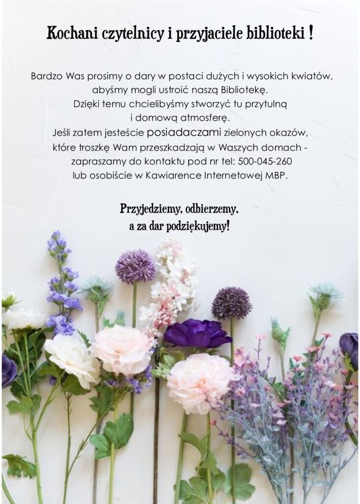 Kochani czytelnicy i przyjaciele biblioteki… 7 października 201925 października 2019 Tadeusz Kochani czytelnicy i przyjaciele biblioteki! Bardzo Was prosimy o dary w postaci dużych i wysokich kwiatów, abyśmy mogli… Kultura i edukacja