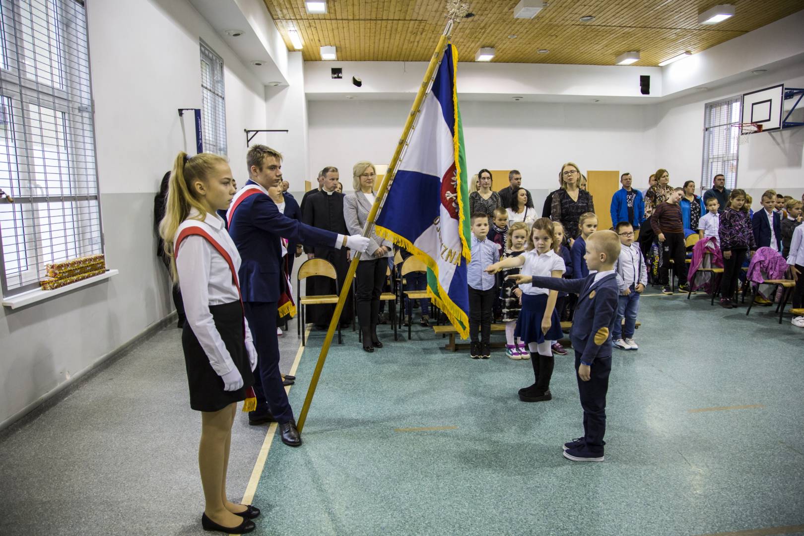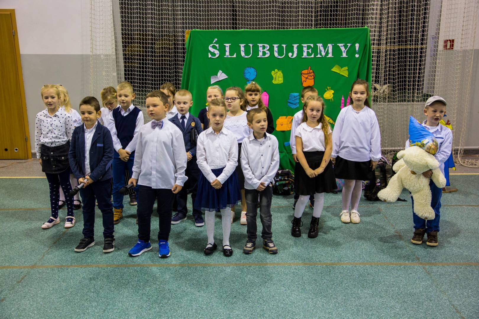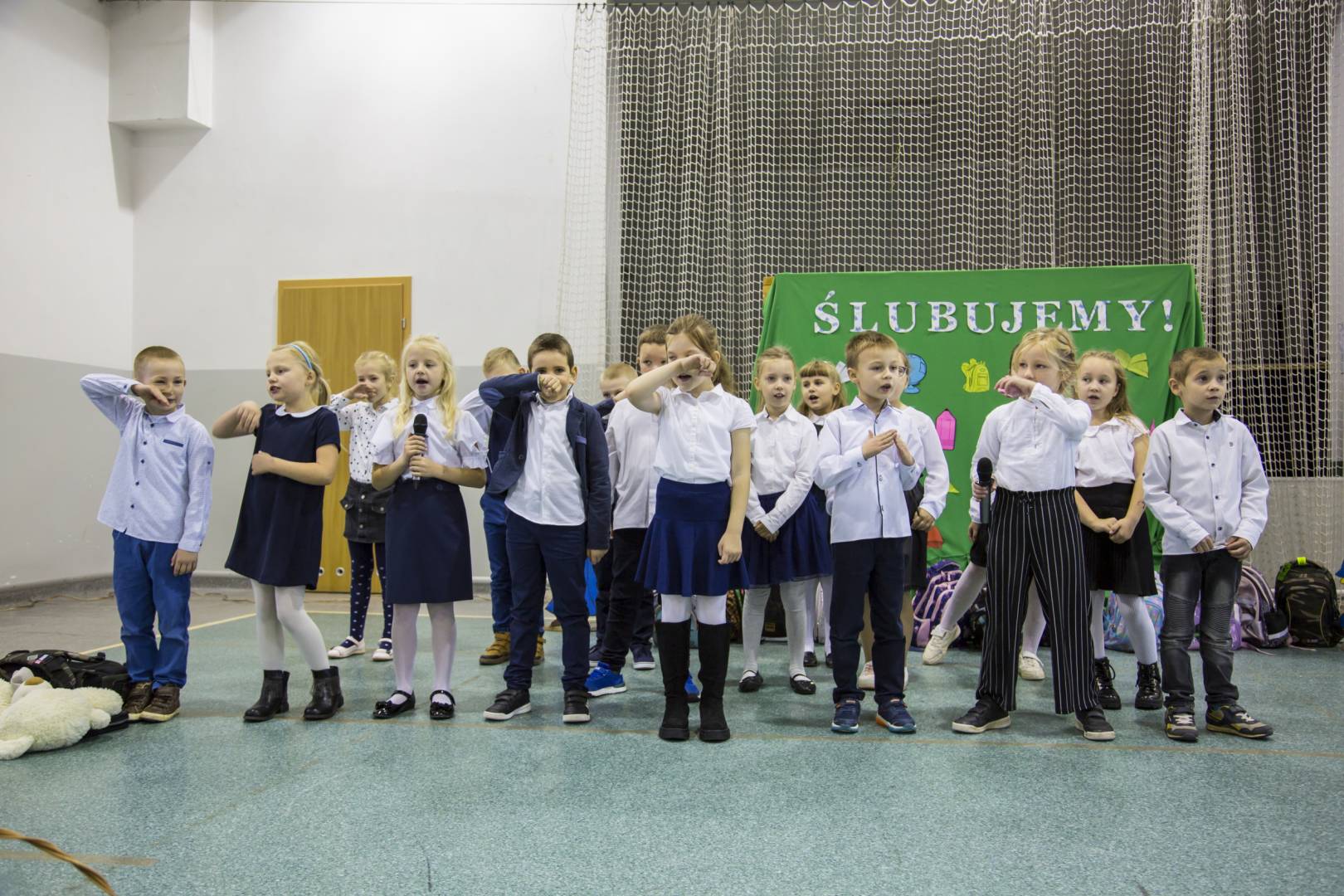 Najważniejszą częścią uroczystości, na którą wszyscy czekali było ślubowanie oraz pasowanie wielkim ołówkiem przez Dyrektor Szkoły Panią Luizę Kostrubiec. Pierwszaki głośno i z przekonaniem przyrzekały być dobrymi i pilnymi uczniami oraz rzetelnie wypełniać swoje