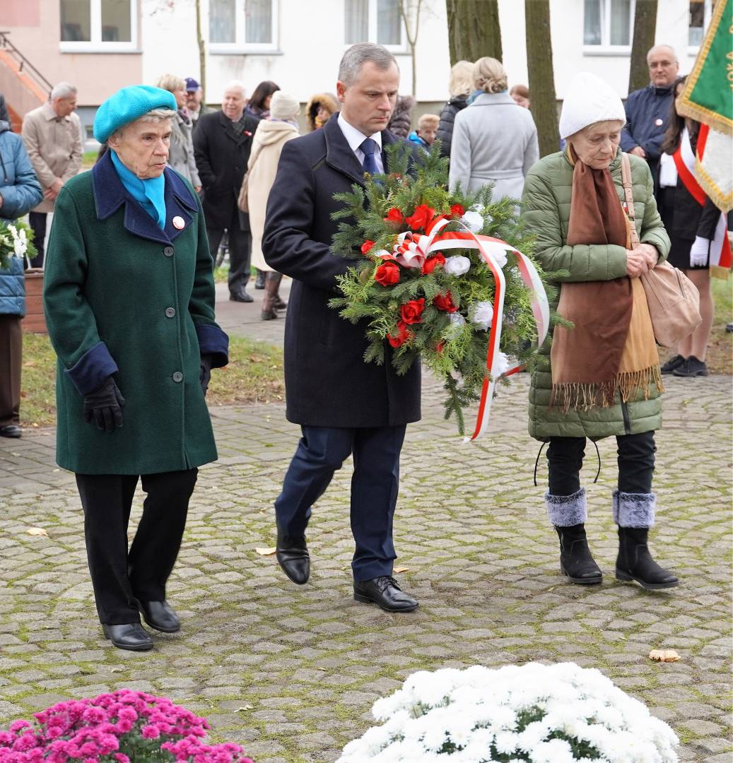 Następnie przedstawiciele lokalnego samorządu, Rady Miejskiej, jednostek organizacyjnych, organizacji pozarządowych, żołnierzy z 21. Centralnego Poligonu Lotniczego w Nadarzycach i mieszkańcy złożyli wiązanki kwiatów przed obeliskiem ofiar totalitaryzmu przy Urzędzie Miejskim. Tę część obchodów uświetnił patriotyczny spektakl słowno – muzyczny przygotowany przez dyrektora – panią Annę Gałązkę i pracowników Miejskiej Biblioteki Publicznej. Utwory poetyckie i pieśni patriotyczne wprowadziły wszystkich zgromadzonych w patriotyczny i podniosły nastrój.